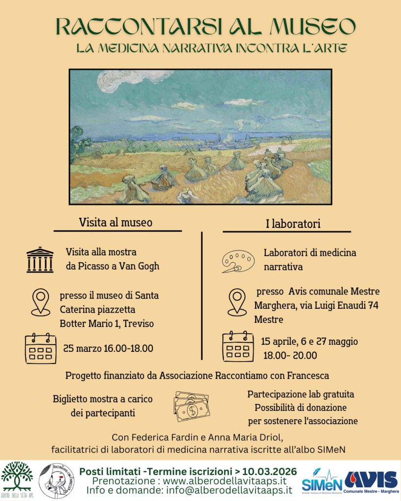 Appuntamento il 25 marzo 2026 dalle 16:00 alle 18:00 (visita al museo) e i giorni 15 aprile, 6 e 27 maggio dalle 18:00 alle 20:00 (laboratori) presso il museo di Santa Caterina in piazzetta Botter Mario,1 a Treviso.